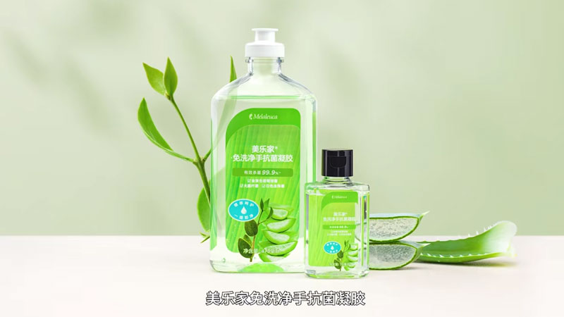 99.9%杀菌,温和速干不伤手。美乐家全新免洗凝胶